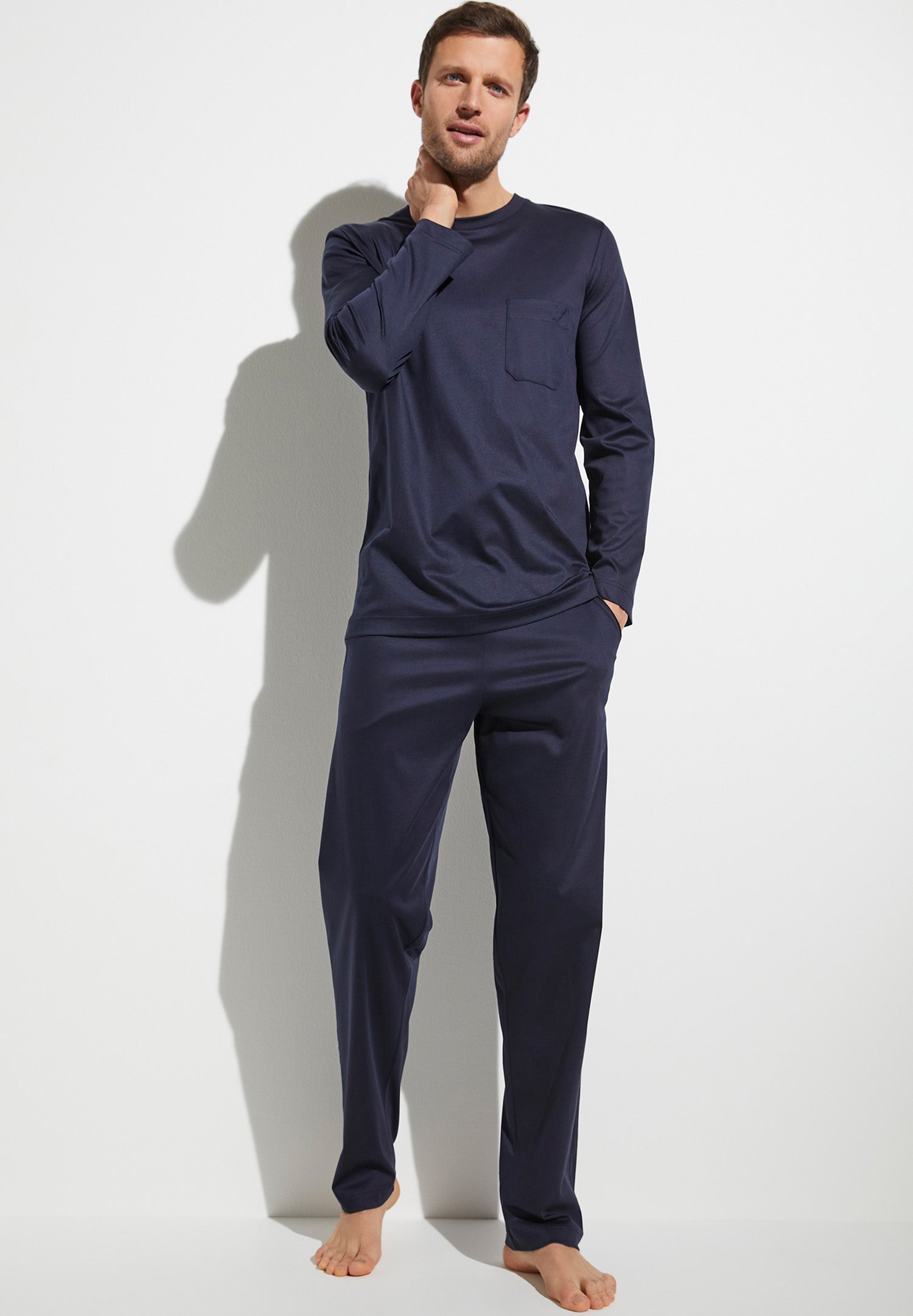 Entdecken Sie die weltberühmten Pyjamas von Zimmerli of Switzerland. Herren-Pyjamas von Zimmerli of Switzerland werden aus hochwertigsten Materialien liebevoll gefertigt. Einige Modelle haben einen Kragen und eine Knopfleiste. Für Männer, die es entspannter mögen, sind Schlafshirts in Kombination mit bequemen Schlafhosen eine Alternative. Klassische Zimmerli of Switzerland Pyjamas werden in der Kollektion mit gemusterten Herren-Schlafanzügen oder besonderen Farben ergänzt. Die Pyjamas sind darüber hinaus sowohl in langer wie auch in kurzer Ausführung erhältlich.