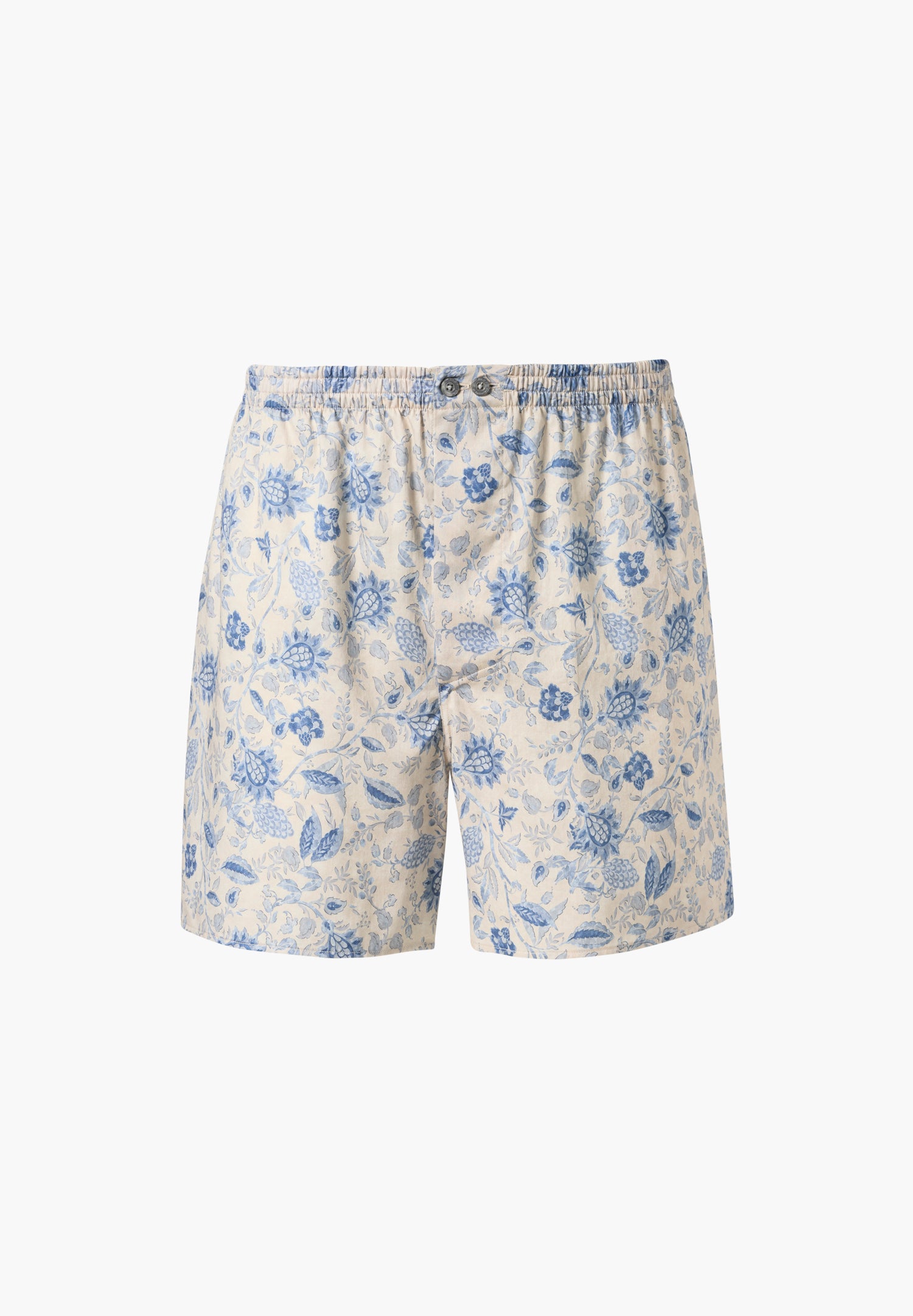 Seidig-weiche Baumwolle wird zu einem angenehm glatten Stoff gewebt und mit kontrastierendem Paisley-Design mit Punkte-Struktur oder einem floralen Motiv mit aztekischen Elementen bedruckt. Die Boxershorts für Herren überzeugen durch den verdeckten, elastischen Bund. Dieser wird mit zwei Knöpfen verschlossen. Ausserdem besitzen die Boxer Shorts einen verdeckten Eingriff, der mit einem Knopf verschlossen wird. Der Schnitt ist locker und bequem, der Webstoff ist fest und nicht elastisch.